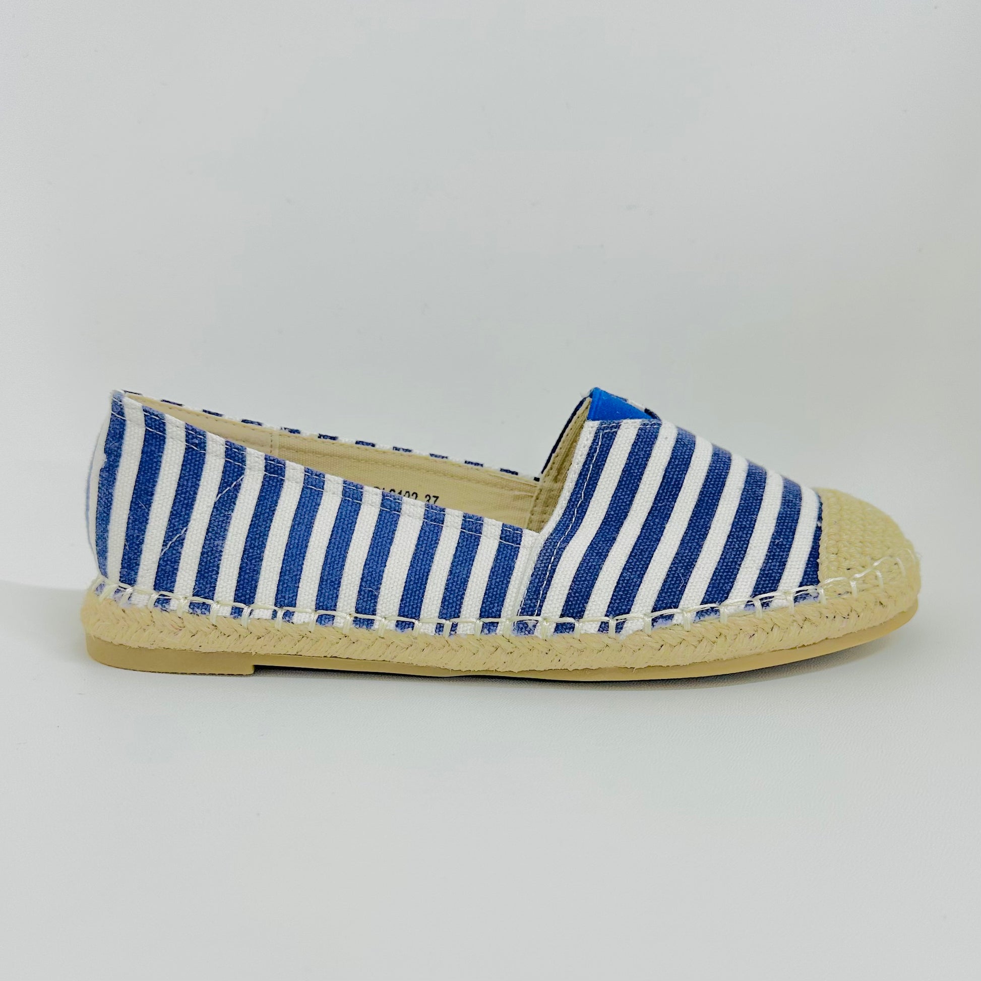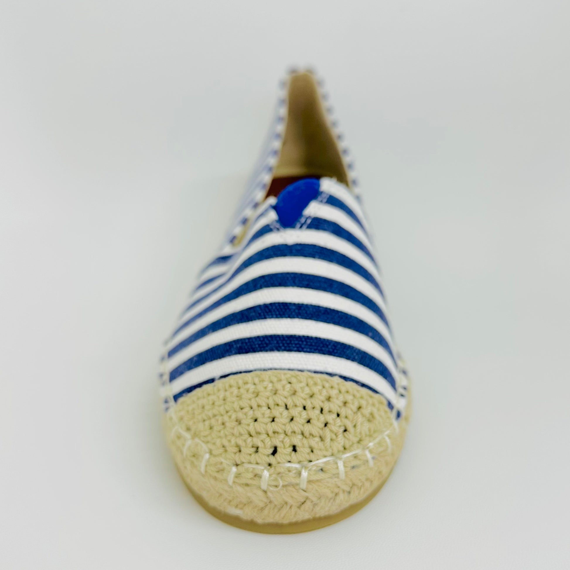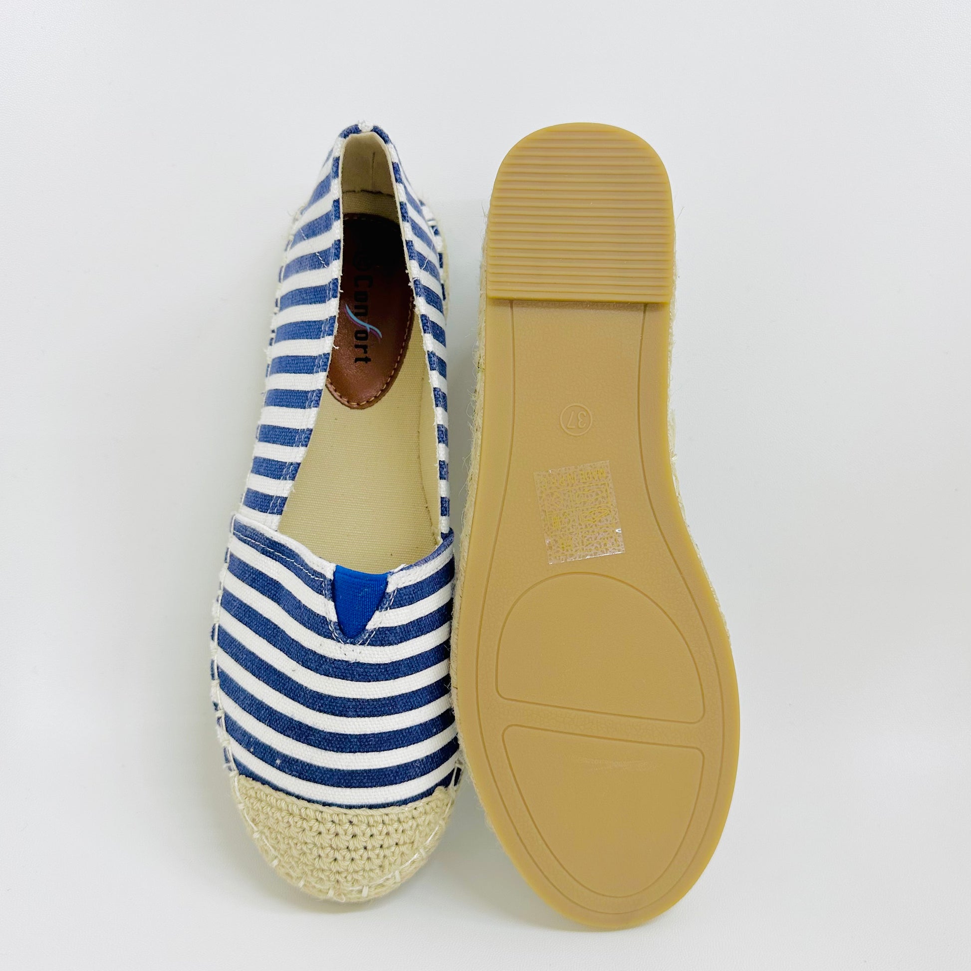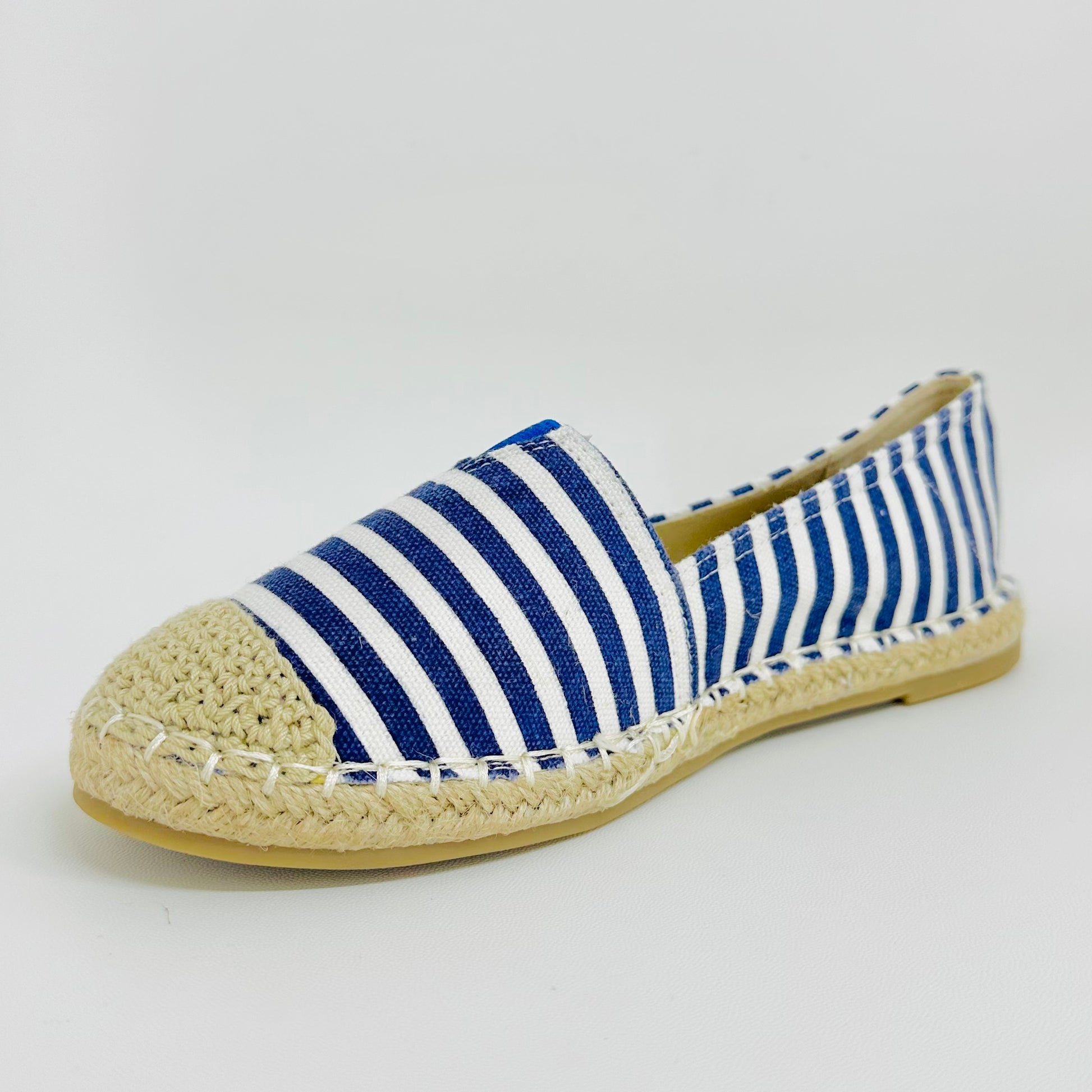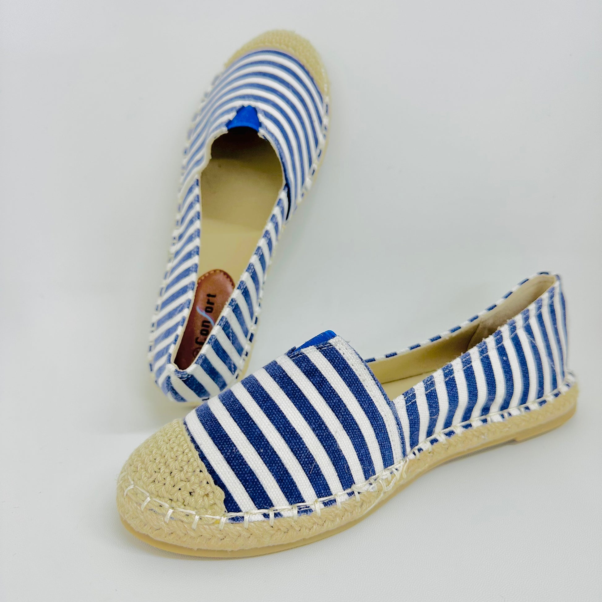 Alpargatas Femininas em Lona – Leves, Confortáveis e Estilosas – Azul Claro Listrado de Várias Cores com Linho Tecido de Palha Para verão