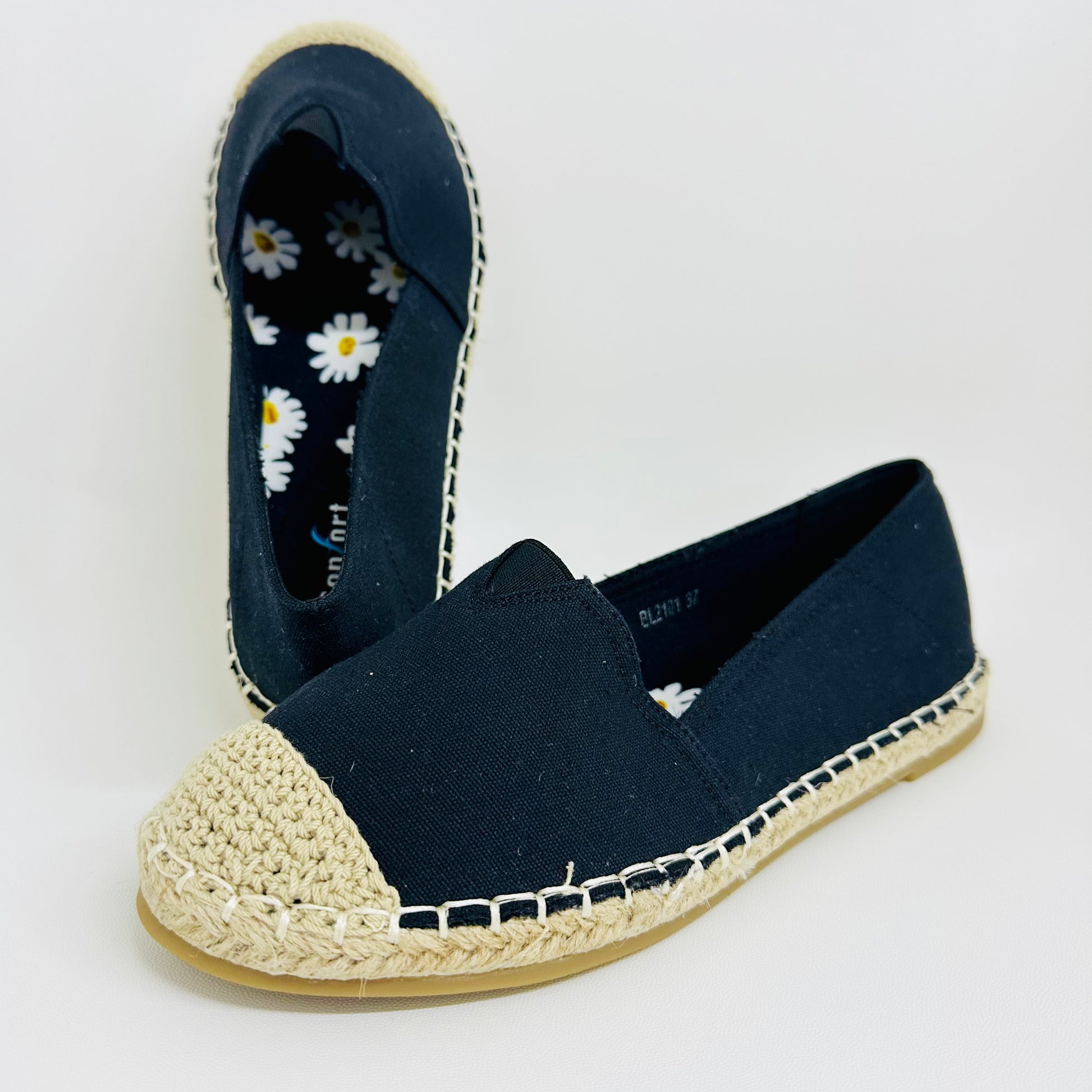 Alpargatas Femininas em Lona – Leves, Confortáveis e Estilosas – Preto de Várias Cores com Linho Tecido de Palha Para verão